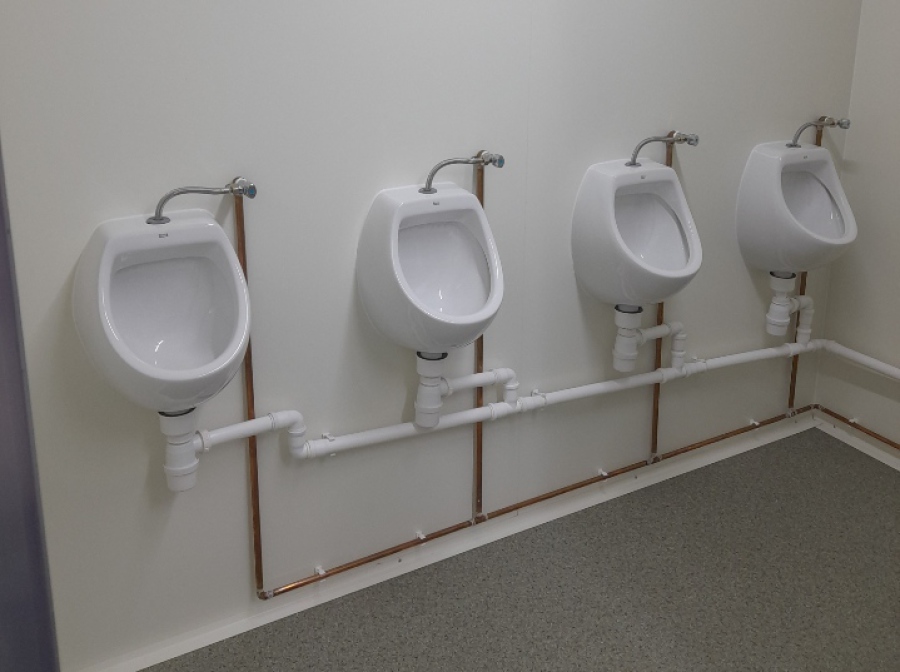 Urinalrinne mit einer Breite von ca. 2,30 m, welche bis zur Saison 2025 ersetzt wird durch 4 Urinale mit Druckspüler